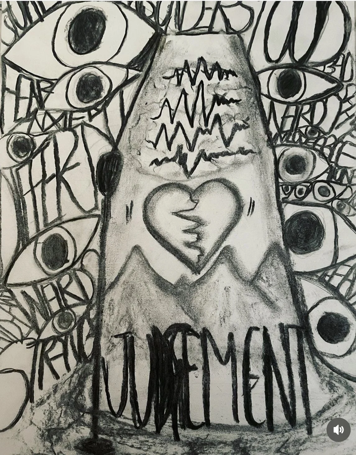 This expressive piece helped me navigate where I was at using words and doodles in a heavy charcoal.